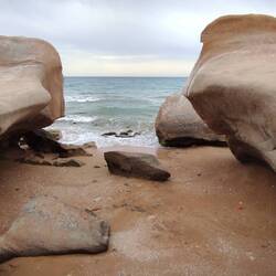 Auch Google Maps irrt sich wollte weg von der Autobahn und direkt an der Küste fahren Straße endete in einer Düne mit Lagune. Hab's aber 20 km weiter doch an die Küste geschafft und es ist superもっと詳しく