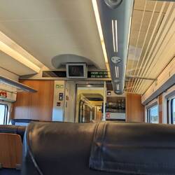 On the train again. This time a Talgo 350, a Spanish train that got its nickname "Pato", that means Duck. Which is quite fitting. Also that train is fast, at this route 300 km/h in some places.