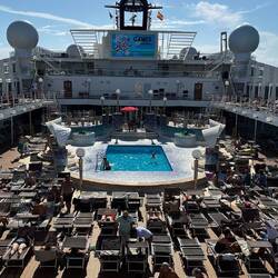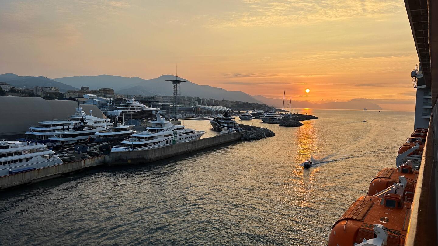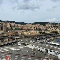 Pünktlich sind wir in Genua. Jetzt Frühstücken und auf den Slot zum Verlassen des Schiffs warten.