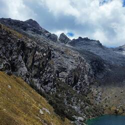 Entrato nel Parco Nazionale Huascaran, il sentiero inizia a diventare più “svizzero” 🇨🇭 e ci sono anche dei passaggi cordati. Un po’ di nostalgia di casa 🏡 🇨🇭 mancano gli ultimi metri per arrivare alla Laguna Churup situata a 4450 msm. Gli ultimi metri si fanno affannosi, ma si intravede il bacino tra le montagne 🏔️
