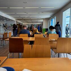 Ci consigliano di fermaci in paese, il vento é troppo forte verso il confine. Detto fatto seguiamo il consiglio e (fortunatamente) posteggiamo il van dietro lo stabile della stazione di servizio, ed entriamo per un caffè ☕️