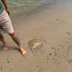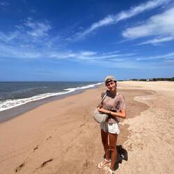 Passeggiamo sulla spiaggia e osserviamo (troppe) enormi meduse 🪼 Dopo la passeggiata continuiamo il tour fino a Piriapolis, una cittadina con un lungomare lunghissimo. Passeggiamo sulla Rambla, finché il troppo sole ci fa tornare all’amata aria condizionata 🚗