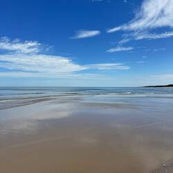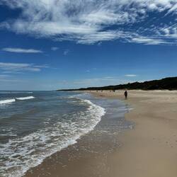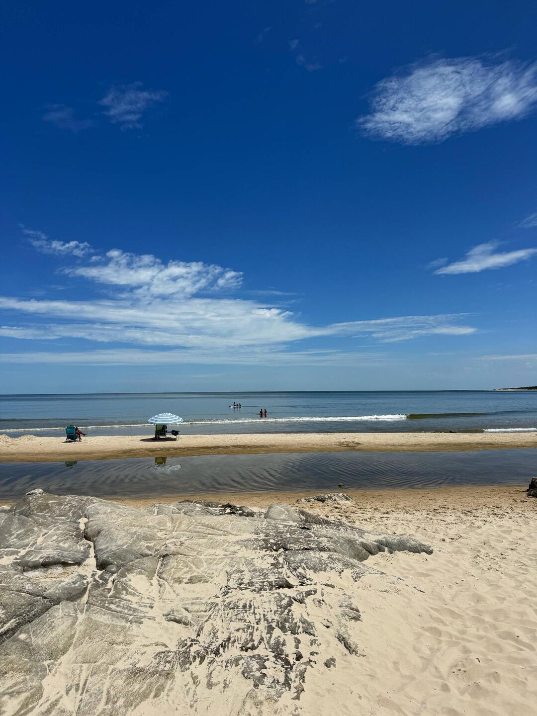 Dopo pranzo scendiamo al mare, ed ecco la sorpresa. Ci ritroviamo davanti a una lunghissima spiaggia di sabbia bianca con un oceano 🌊 quasi piatto e tranquillo. Poche persone prendono il sole ☀️ e l’ambiente é davvero bellissimo.
