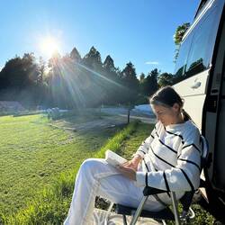 Come a casa, la mattina in van comincia aprendo le tende, per scoprire cosa ci riserva la giornata ☀️ e qualche minuto per stiracchiarsi al calduccio (grazie Vebasto 🙏)