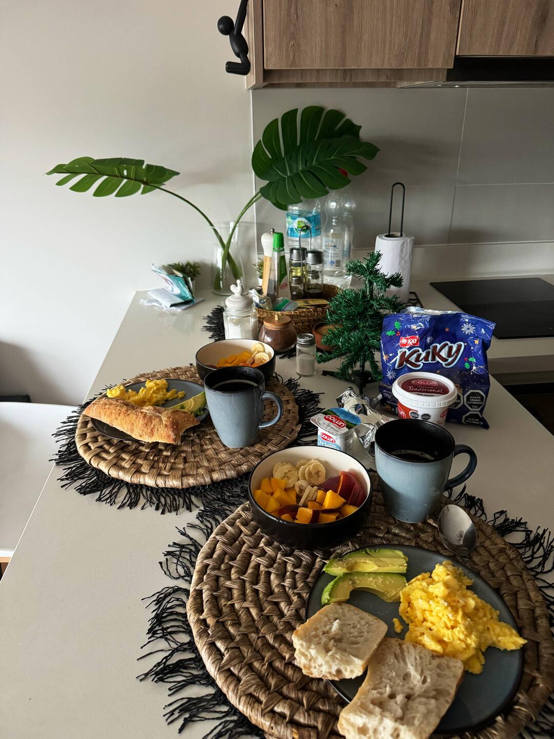 Sveglia ⏰ Ci prepariamo la solita super colazione 🍌 🥭 🍑 🥚 🥖 🥑 Con mooolta gioia abbiamo scoperto che in Cile 🇨🇱 fanno un pane degno di essere chiamato tale 🥯 unaLæs mere