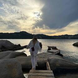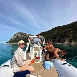 Schon gestern Abend war ich etwas aufgeregt, da heute Mellis Geburtstag ist. Ich hatte einige Dinge vorbereitet und wollte natürlich, dass sie einen richtig schönen Tag hat. Doch erstmal gab es Frühstück. Heute deutlich früher als sonst, denn wir hatten einen Plan. Sie wusste nicht, was sie erwartet. Paul briet ihr ein Omelette und ich arrangierte alle unsere Lebensmittel auf einer großen Platte - wie im Restaurant. Es sah wirklich schön aus. Ein paar Blümchen und kleine Geschenke auf ihrem Teller - et voilà - fertig war das Sektfrühstück zum Geburtstag. Mit der Karte, die ich geschrieben hatte, offenbarte sich dann unsere heutige Mission: Delfine sehen mit einem Boot, welches wir selbst steuerten. Wir machten uns auf nach Porto Rotondo. Vom Hafen legten wir mit einem Schlauchboot und 40PS ab und fuhren der Küste entlang zur Insel Figarolo. Dort steht mitten auf dem Meer eine große Anlage zur Fischzucht. Nach meiner Recherche sollen dort seit über 10 Jahren Delfine leben. Meist sieht man sie jedoch morgens, weil die Fische dann gefüttert werden. Dafür waren wir zwar etwas zu spät dran, aber wir orientieren uns erst einmal an der SUP-Gruppe, die ebenfalls neben der Fischzucht Halt machten. Als die sich wieder ans Ufer verabschiedeten, fuhren wir noch ein paar Runden um die Insel und die Anlage und setzten dann Anker vor dem Strand der Insel. Wir blickten quasi genau auf die Anlage. Das Wasser schimmerte türkisblau. Die Jungs sprangen rein und schwammen zum Inselufer. Wir genossen die Sonne auf dem Deck. Das Wasser lag ganz still als Max plötzlich rief: „Delfine!“. Melli und ich konnten unseren Augen kaum trauen. Erst zeigte sich nur die Finne und dann sah man ihren gesamten Rumpf. Zwei Delfine nur ein paar hundert Meter von uns entfernt. Wir legten ab und steuerten genau auf sie zu. Aus Zweien wurden vier und wir waren mitten in ihrem Treiben drin. Wir stellten den Motor aus und es wurde still auf dem Boot. Ich konnte dieses Glück gar nicht fassen. Direkt vor unseren Augen sprangen sie aus dem Wasser, tollten miteinander herum und schwammen unter unserem kleinen Schlauchboot durch. Wir waren baff und Melli überglücklich. Ich wusste nicht, dass dieses Ereignis auf meiner Bucketlist stand. Aber jetzt fühlte es sich so an, als hätte auch ich mir einen lang ersehnten Wunsch erfüllt. Nach einiger Zeit verließen sie unseren Spot. Wir beobachten sie nur noch aus der Ferne, als sie in Richtung weites Mittelmeer aufbrachen. Wir suchten uns einen geschützten Standort und setzten erneut den Anker. Das Wasser war kristallklar und perfekt für eine Abkühlung zwischendurch. Wir hatten noch ein paar Stunden und genossen die gemeinsame Zeit auf dem Boot bei schönstem Wetter. Auf unserem Rückweg hielten wir noch einmal an einer Bucht, weil das Wasser dort so wunderschön türkis schimmerte. Kurz nach 17 Uhr kehren wir wieder im Hafen ein. Zufrieden, kaputt und glücklich. Nach einer Stunde Heimfahrt kehrten wir zu Hause ein und machten uns bereit fürs Abendessen. Wir gingen im nahe gelegenen Shardana essen. Völlig platt landeten wir gegen 23 Uhr wieder in der Unterkunft und schafften es noch Bilder und Videos auszutauschen bis wir alle ins Bett fielen. Das war ein perfekter Tag. Czytaj więcej