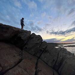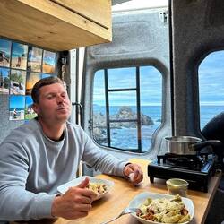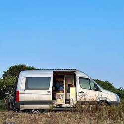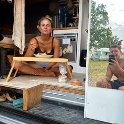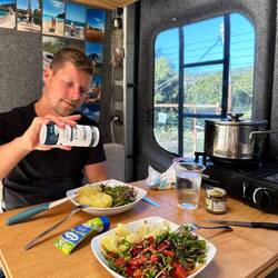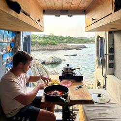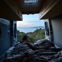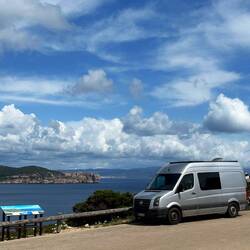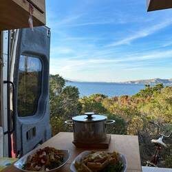 Zwei Tage sind wirklich schwer zusammen zu fassen, denn an einem Tag passiert meist so viel, dass es mir so vorkommt, als wäre es schon ewig her. Gestern früh standen wir noch an unserem alten Stellplatz im Busch. Quasi über Palau. Wir frühstückten, ich nahm an einem Online-Kurs teil und telefonierte lange mit Melli. Es war Sonntag und wir wollten eigentlich auf die Inselgruppe La Maddalena fahren, entschieden uns dann aber spontan dagegen, weil es schon relativ spät war. Kurz bevor wir den Stellplatz verließen, quatschte uns ein Gärtner auf italienische an. Wir verstanden leider kein Wort, aber es war offensichtlich, dass er kein Problem damit hatte, dass wir hier stehen. Irgendwann gaben wir ihm unser Handy damit er das Gesagte in den Übersetzer eintippen konnte. „Bitte sauber halten“ stand auf dem Handybildschirm. Wir sicherten ihm zu dies zu tun und verließen den Platz dann aber sowieso um zum Einkaufen nach Palau zu fahren. Der erste Laden hatte gerade geschlossen und der zweite war kurz davor. Wir sammelten schnell unsere Artikel zusammen und fuhren dann auf den ersten Stellplatz. Dann auf einen weiteren und beim Dritten machten wir endgültig Halt. Kaum eingerichtet, quatschte uns ein Mädel an, ob sie ihren Rucksack unter unserem Auto verstauen könnte, während sie in Stadt geht. Sie schlief die Nacht über mit ihrem Freund in der Hängematte am Strand. Wir machten uns dann auch auf den Weg in die Stadt und blieben überraschenderweise mehrere Stunden, weil die Promenade so schön war und wir über die Steine bis zu einem Campingplatz direkt am Meer spazieren konnten. Auf dem Rückweg hielten wir an einer Pizzeria und genehmigten uns eine Marinara für 5€. Dennis großes Bier hat 6€ gekostet. Danach meldete sich mein Magen wieder und gab klar zu erkennen, dass noch ein Problem vorliegt. Wir eilten zum Bus und verkrochen uns ins Bett. Heute Morgen musste ich dann meinen Selleriesaft pressen, weil ich es gestern Abend nicht mehr geschafft hatte. Ursprünglich wollten wir dann heute zur Inselgruppe La Maddalena übersetzen, aber bei den Wolken würde uns der Besuch nicht wirklich überzeugen. Wir entschieden kurzerhand weiterzufahren. Mit einem schönen Stellplatz am Meer sind wir auch zufrieden. Dort angekommen spazierten wir einfach drauf los und endeten in einer wunderschönen Bucht mit riesigen Felsen, die völlig absurd und surreal in ihrer Erscheinung waren. Zurück am Bus kochten wir Süßkartoffel, bereiteten Guacamole zu und aßen die letzten Nudelreste. Ich schrieb noch ein paar Beiträge zusammen und telefonierte. Jetzt liegen wir im Bett und ich bin ziemlich KO. Also wird geschlafen. Ich wünsch euch was. Czytaj więcej