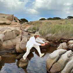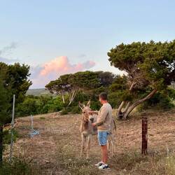 Am gestrigen Morgen sind wir recht spät aufgebrochen, um das Capo Testa zu bewandern. Gleich zu Beginn der Wanderung starteten wir auf einem Pfad, der leider nicht wirklich gut zu begehen war. Dennis stürzte und ich schlitzte mir das Knie auf. Als wir auf den normalen Weg zurückfanden, wurden wir dann gleich mit dem Anblick einer Pfannen-großen Schildkröte entschädigt. Ein paar Stunden liefen wir bei starkem Wind zwischen ulkigen Felsformationen bergauf und -ab. Zwischendurch wurden wir immer mal wieder mit einem Blick auf das weite Meer beschenkt. 8km später landeten wir wieder zu Hause und belohnten uns mit ein paar Snacks. Ursprünglich wollten wir dann zum Stellplatz fahren, aber spontan kam es dann dazu, dass wir noch Diesel und Wasser voll tankten. Auf der Insel ist der Sprit wahrscheinlich so teuer wie in Deutschland. Wir haben 1,68€/Liter bezahlt. Beim Wasser holen hat sich ein kleiner Hund zu uns gesellt und wich die halbe Stunde nicht von unserer Seite. Am liebsten hätten wir ihn mitgenommen. Auf dem Weg zum Stellplatz fuhren wir an einer Wildschwein-Familie und einer Esel-Herde vorbei. Ein Esel stand sogar direkt neben uns als wir das Auto abstellten. Nach dem schönen Sonnenuntergang telefonierte ich noch mit Mama. Und danach ging es direkt ins Bett. Heute Morgen waren wir beide wieder etwas genügsam und kamen nach der gestrigen Wanderung nicht so recht hoch. Frühstück, mal wieder Mails checken und Yoga. Danach fix einkaufen und zu unserem heutigen Highlight inkl. Stellplatz: der Thermalquelle. Von dort aus wanderten wir zu einem Castello hinauf. Zuerst haben wir den Weg nicht einmal gefunden und dann sind wir 3 Mal falsch gelaufen. Ein Mann auf einem Quad sah unsere suchenden Blicke und versuchte uns auf italienisch zu erklären, wo wir hochkommen. Ich verstand nur „Trail“ und mit seinem Arm machte er deutlich, dass es gerade aus hoch ging. An einem Holztor fanden wir den überhaupt nicht ausgeschilderten Weg und erreichten die Burg nach einigen Mühen durch dicht bewachsene Pfade. Für den Ausblick hat es sich jedoch gelohnt. Aus ursprünglichen 2 oder 3 km wurden dann ganz schnell wieder 7. Dementsprechend kaputt kamen wir wieder zu Hause an. Glücklicherweise haben wir eine heiße Quelle vor der Tür in der wir uns entspannen konnten. Zu Beginn war es an den Füßen so heiß, dass ich es erst nicht rein geschafft habe. Der Mann im Becken neben mir erklärte mir dann, dass es am äußeren Rand kühl sei und ich dann über die Seite einsteigen soll. Das klappte gut und wir hielten es eine gute halbe Stunde in den warmen Tümpeln aus. Danach kochten wir Abendbrot und jetzt gehts ins Bett. Czytaj więcej