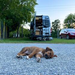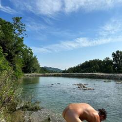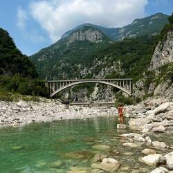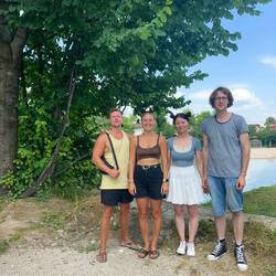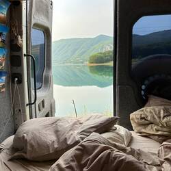 Es gibt Neuigkeiten. Seit zwei Wochen sind wir zurück in Italien. Mit dem Zug ging es 18 Stunden von Berlin nach Bologna. Das war ein wilder und langer Ritt. In Bologna wurden wir dann mit entspannten 38 Grad empfangen. Unserem zu Hause ging es gut in der Zeit. Also konnten wir uns sorgenfrei auf den Weg raus aus Bologna machen. Wir brauchten etwas zum Abkühlen, denn bei den Temperaturen ist es im Auto kaum auszuhalten. Nach einer Nacht irgendwo an einem kleinen Fluss fuhren eine ziemliche Strecke zu einem kostenlosen Stellplatz eines Restaurants. Hier machten wir es uns einige Tage gemütlich. Da Dennis kränkelte, schlenderten wir nur zum Strand oder verharrten auf der gemütlichen Rasenfläche mit den anderen Campern. Es war fast wie auf einem Campingplatz und wir fühlten uns richtig wohl. Ganz viele Hunde, freundliche Menschen und gutes Wetter - mehr braucht es doch nicht. In den Tagen spielten wir auch das Stühle stapeln-Spiel. Dennis geduldige Hand schlägt dabei ganz klar meine Ungeduld. Seine Geduld hat sich auch bei unserer neusten Errungenschaft bewiesen: Trainingsgewichte. Für 50€ haben wir in einer italienischen Kleinstadt bei einem älteren Herrn Hanteln und etliche Gewichte gekauft. Jetzt können die mit Sand gefüllten Kanister endlich das Weite suchen. Da wir uns nun schon ziemlich im Norden Italiens befanden, entschlossen wir uns dazu einen Stellplatz in den Bergen aufzusuchen. Für diesen Entschluss sollten wir belohnt werden. Der schönste Bergsee alias Staudamm wartete auf uns. Im Tal schimmerte das türkise Wasser. Am Ufer entlang saßen etliche Jugendliche und Kinder und sprangen ins kühle Nass. Wir gesellten uns zu ihnen. Links von uns eine riesige alte Steinbrücke. Unter ihr der Staudamm, der einen türkis schimmernden See hinter sich festhielt. Unter der Brücke lief das Wasser hindurch und sammelte sich in zwei größeren Becken entlang des steinigen Ufers. Es war unsagbar heiß, aber das Wasser war eisig kalt. Dieser Ort war so malerisch, dass wir mehr als nur eine Nacht blieben. Einen ganzen Tag lang haben wir uns nur zwischen dem Wasser und dem Auto hin und her bewegt. Dann war es jedoch Zeit weiter zu ziehen, denn unsere Tage in Italien sind gezählt. Wir machten und auf zu unserem letzten Stopp: Trieste. Hier erledigten wir alle wichtigen Besorgungen, für die es einer größeren Stadt bedarf. Specialty Kaffeebohnen, ein Moskitonetz, Ziegenmilchseife, Haferkörner vom Biomarkt, ein Fahrradschloss sowie Sicherungen für unseren Kühlschrank. Denn unser Kühlschrank hat sich jetzt schon mehrmals innerhalb weniger Tage verabschiedet. Deshalb mussten wir drei Mal die Sicherung wechseln und zusätzliche Lüftungslöcher in die Holzverkleidung bohren. Aber wir werden weiterhin beobachten, denn erstmal funktioniert er wieder. Der Grund für unsere lange Einkaufsliste: wir sind jetzt in Slowenien angekommen. Wir stehen auf einem Weingut irgendwo ganz im Westen des Landes. Was wir bis jetzt gesehen haben, gefällt uns schon mal ganz gut. Bspw. die Spritpreise. Diesel ist hier ungefähr 20 Cent günstiger als in Italien. Ansonsten werden wir in den kommenden Tagen und Wochen bestimmt berichten, was es hier so schönes zu sehen und erleben gibt. Ich freue mich jedenfalls total ein neues Land zu entdecken. Ich weiß eigentlich nichts über Slowenien und habe keine Erwartungen. Das sind eigentlich immer die besten Voraussetzungen. Mein Gefühl sagt mir irgendwie, dass wir jetzt immer weiter von unserem ursprünglichen zu Hause entfernt sind. Und rein geografisch und örtlich gesehen, stimmt das ja auch. Aber was mir dieses Gefühl jetzt genau sagen will, muss ich in den nächsten Wochen noch herausfinden. Vielleicht weil die Kultur jetzt osteuropäischer wird? Vielleicht weil die Sprachbarriere noch größer ist als zuvor? Ich bin dem Gefühl auf der Spur. Ich drücke euch alle ganz fest und freue mich, wenn ihr bis hier hin gelesen habt. Czytaj więcej