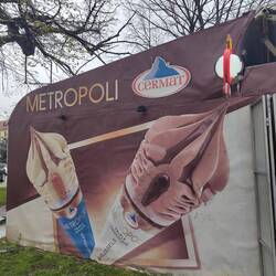 Was tun, wenn es stets regnet? Entweder weiterfahren oder guten Mutes erkunden. Wir beschliessen Zweiteres und spazieren in die Innenstadt. Nordmazedonien scheint ein Faible für Markenklau zu haben, die bekannteste Glacémarke heisst "Cermat" und unser Matterhorn ist abgebildet, ob das hier jemensch bemerkt hat?