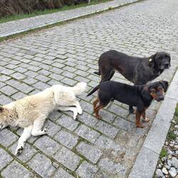 Wir fahren wieder Richtung Griechenland und machen einen Zwischenhalt in der Stadt Bitola. Übernachten tun wir gleich neben einem Bach, der wegen Regenwetter aktuell eher ein Flüsschen ist. Begrüsst - und nachdem Anfüttern auch bewacht - werden wir von einem kleinen Rudel Strassenhunde. Sie sind aber allesamt ungefährlich und geniessen Streicheleinheiten.