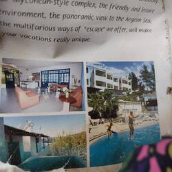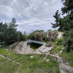 2. Weitergefahren am Hang oberhalb von Skioni findet sich das Geisterhotel Porto Skioni. Alles ist zugänglich, die Hotelzimmer, Dach, Aufenthaltsbereiche, Lager oder das Aussenpool. Wir finden eine Zeitschrift, wo Werbung des Hotels drinsteht. Der Vergleich zum Hotel in Betrieb und heute ist sehr spannend, aber vergleicht doch selbst 😉