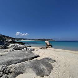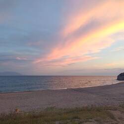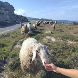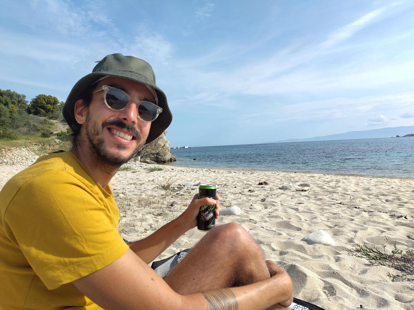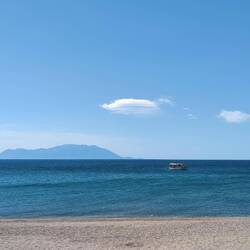 Wir übernachten noch 1 Nacht an einem Strand auf Kassandra, ein schöner Ort aber teils sehr vermüllt (leider). Am Morgen entdeckten wir ein seltsames Tier. Wir haben zuerst eine Art Qualle vermutet, nach kurzer Recherche aber rausgefunden, dass es sich um einen schwarzen Seehasen (Riesenschneckenart) handelt. Nina hat ihn vom Sandstrand gerettet und nun schwimmt er mit seinem flügelartigen Körper um den Seetang herum, sein Lieblingsessen.