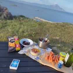In den letzten Tagen ist es deutlich wärmer geworden. Wir geniessen es richtig draussen zu sein! Es gibt Apéro sowie Frühstück am Meer und plötzlich haben wir schon fast einen Sonnenstich kassiert!