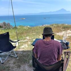 Wir verbringen einige Tage an diesem sehr einsamen, aber schönen Küstenabschnitt. Die Tage sind sehr sonnig, aber auch windig. Wir stehen darum in einer Einbuchtung in Strandnähe. Mit Blick aufs Meer sind die Insel Samothraki und ab und zu ein Fischerboot zu entdecken. (Diese Szenerie scheint wie aus einem Dok Film zu sein.)