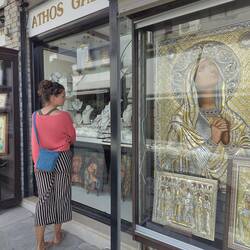 Die Stadt hat sonst eine zentrale orthodoxe Kirche, vollgestopft mit Heiligenbildern (Ikonen). Wie entdecken die Erzengel Michael und Gabriel, die beim Eintritt in die Kirche geküsst werden.
