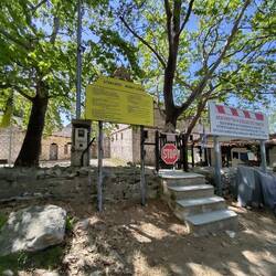 Daneben steht ein orthodoxes kleines Heiligtum mit Kerze und Ikonen im Inneren. Es kommt am Abend ein Mann vorbei der nett grüsst und die Kerze anzündet und kurz aufräumt.