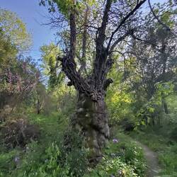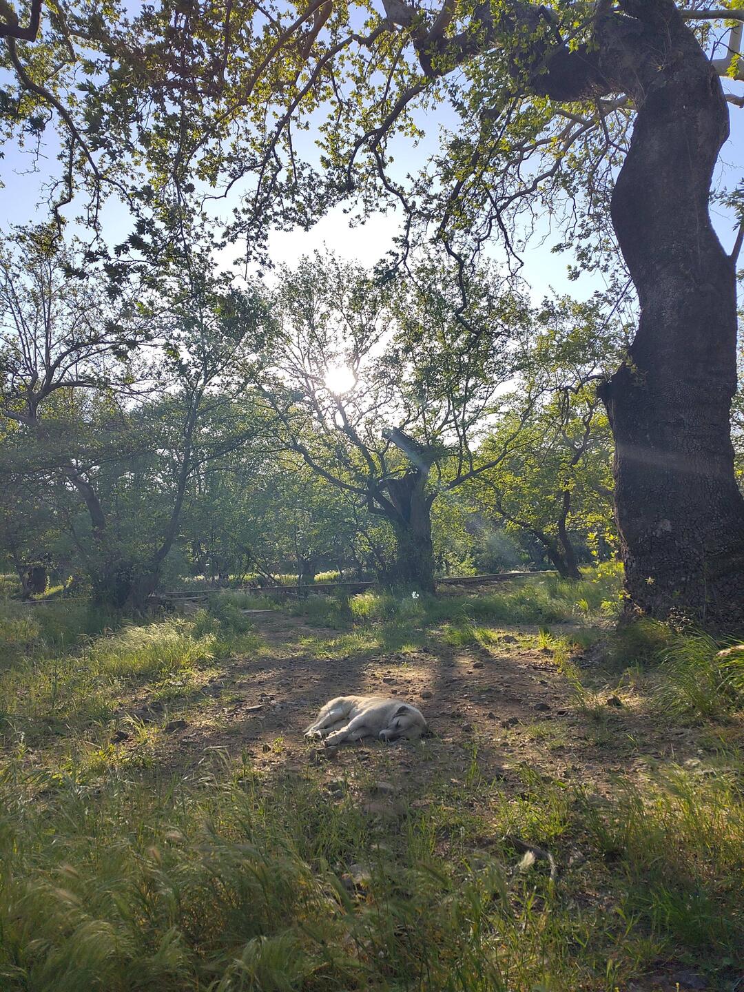 Danach sind wir Weitergefahren und haben in Stavros einen Abendspaziergang gemacht. Bei einem sonnigen Waldabschnitt sind wir mächtig erschrocken, denn dort haben sich 2 Schlangen gesonnt (eine grosse und kleine). Sie waren aber friedlich und sind weggeschlängelt in die Büsche. Die Mücken sind aber neu da und eine Plage. Weiter oben haben wir schöne alte Bäume entdeckt, neben einem kleinen Bach.