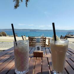 Heute besuchten wir die Agios Nikolaos Kirche, wo wir eine sehr freundliche Begegnung hatten. Der Securitas sprach uns gleich bei unserer Ankunft an, ob wir aus der Schweiz seien und dass er noch Schweizerfranken habe. Nach einem schnellen Austausch von Franken und Euro besichtigten wir die Eindrücklichen Gotteshäuser, die mitten auf dem Wasser gebaut sind. Auf dem Weg zurück zum Bus gab uns der nette Mann namens Dimitris noch eine Orange. (Im Austausch überbrachten wir ihm ein paar schweizer "Schöggeli".)
