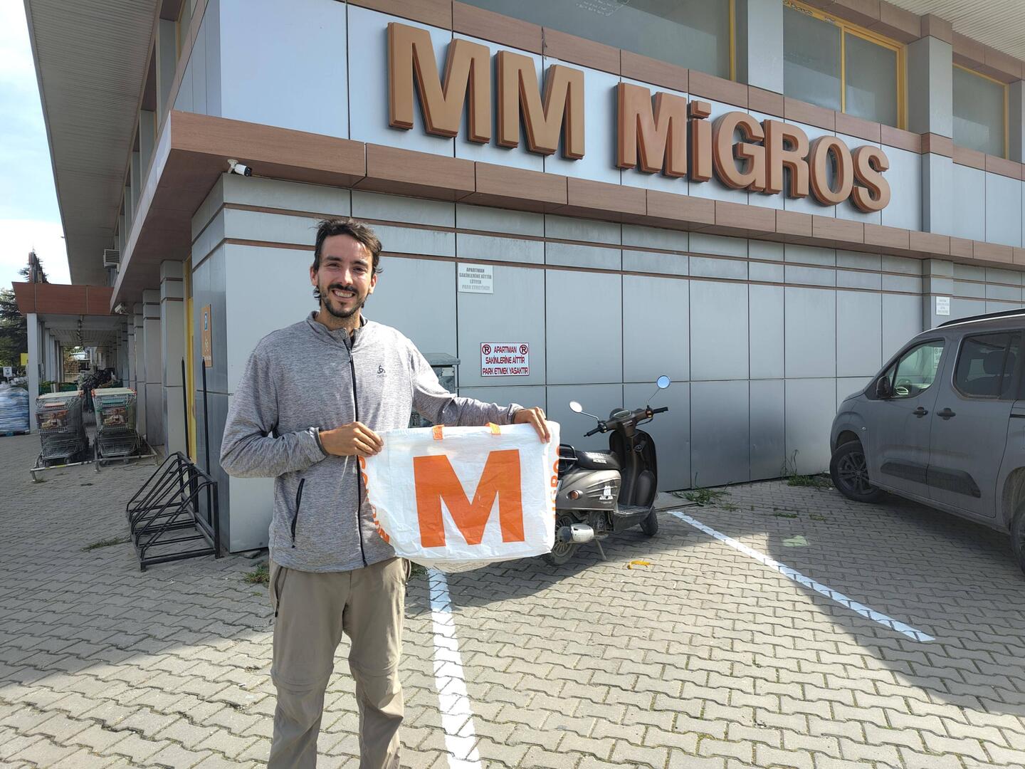 Weiter entdeckten wir das Flaggen behangene Grab des Helden Baba. Und als wir dann, an einem Sonntag, vor der Migros standen, mussten wir natürlich auch noch da rein.... ;) Die haben das ganze Design übernommen. Entlarven kann man sie nicht nur wegen der Schreibweise (mit kleinem i), auch weil es dort Alkohol gibt. 🤭
