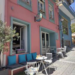 Wir übernachten diese Nacht auf dem Parkplatz und sind nun die einzigen weit und breit. Nach einem "Birchermüesli mit Erdbeeren" und der Begrüssung der Hunde geht es weiter ins Städchen Xanthi. Dort finden wir einen guten Gemüsestand in der Markthalle, ein tolles Dessert (Loukoum mit Nüssen) und Nina gönnt sich ein leckeres Gebäck mit Feta.