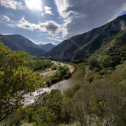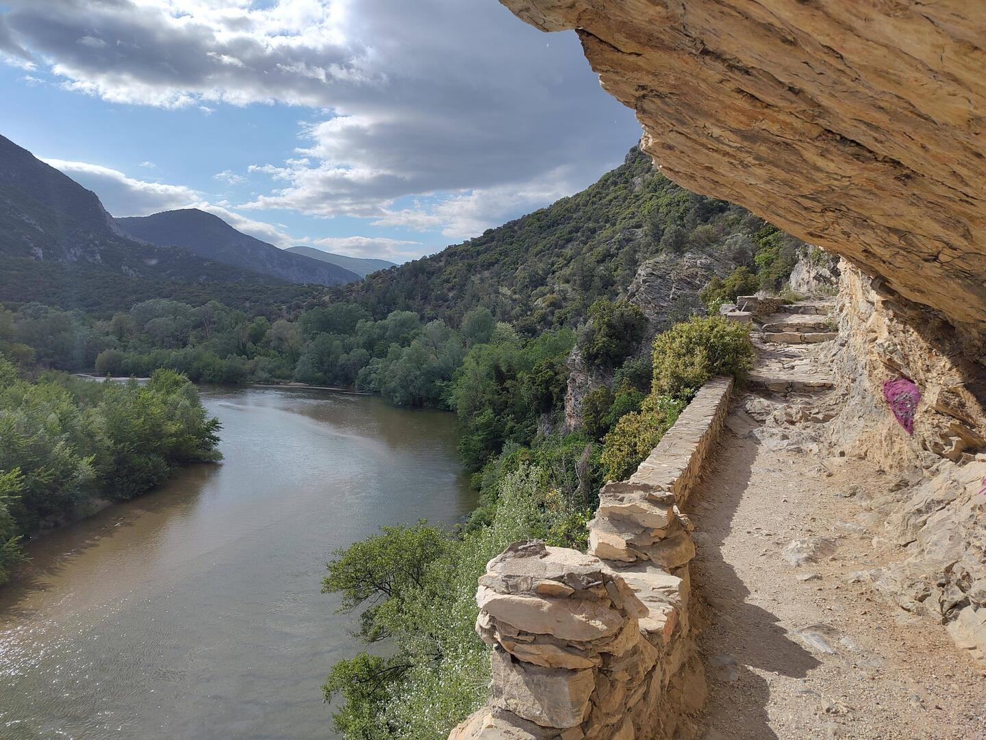 Heute wollen wir wiedermal einen Naturort entdecken. Wir sind allerdings mit dieser Idee nicht die einzigen, denn am Wochenende gehen die Griechen sehr gerne an solche Orte. Der Parkplatz ist voll, wir finden aber noch ein Plätzchen. Nach einer Brotzeit am Fluss machen wir eine kurze Wanderung dem angenehmen Pfad entlang ins Nestostal. Er folgt in kleiner Distanz oberhalb einer eindrücklichen Bahnstrecke. Leider fährt der Zug nur auf Anfrage von mind. 40 Personen. Aber Spazierend ist dieses Tal auch eine Augenweide.