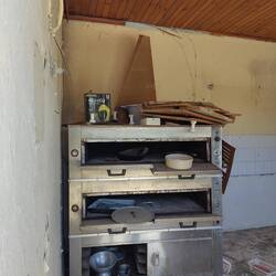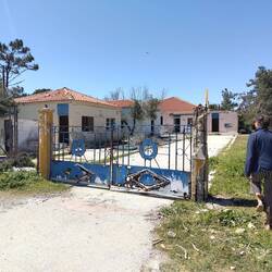 1. Ort ist gleich in Possidi, etwas im Landesinneren. Dort stehen alte zweistöckige Häuser und Dusch- und Badinfrastruktur in einem Waldabschnitt. Es hat immer wieder betonierte kleine Plätze. Wir vermuten, dass dies mal ein Camping oder Sportcamp war, der nicht mehr rendiert hat.