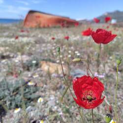 Danach machen wir Halt in Alt Maroneia, einem Fischerdörfchen, das fast aus mehr Ruinen (byzantinischer Zeit) und verlassenen Gebäuden (Kirchliche Klosterschule) besteht. Natürlich begrüsst uns ein Hund und kommt mit uns auf den Rundgang.