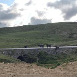Nicht nur Menschen sondern auch ganz viele Tiere treffen wir auf unserer Reise an. Am Schwarzen Meer gab es Büffel, die es nicht so eilig hatten über die Strasse zu gehen. Oder an einer schönen Lichtung, ohne Müll ausnahmsweise, hat einer der vielen Hunde sich doch getraut, ein Leckerli von uns zu essen.