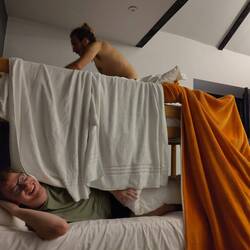Wir verbringen eine lustige Nacht in Lydden (nach einem sehr leckeren Abendessen). Wahrscheinlich hat auch die Zimmeraufteilung (Familienzimmer) und unsere Stimmung dazu beigetragen.