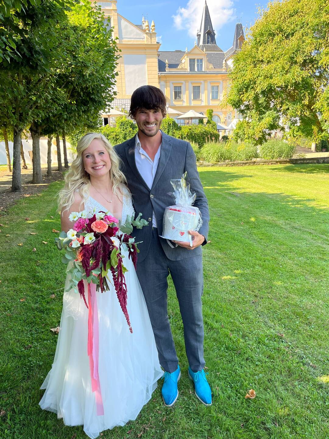 Wie schon geschrieben, diese Reise endet mit einer weiteren Hochzeit. Nämlich die von Franzi und Hannes. Geheiratet wurde auf einem Schloss 🏰😊. Wir hatten herrliches Sommerwetter, mit einemBaca lagi