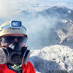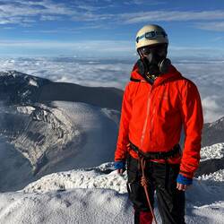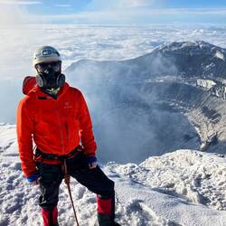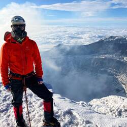 We made it to the summit shortly after sunrise and the Mexicans (who left an hour before). We let them take their (many) photos, so we could enjoy the summit to ourselves. After enjoying some snacks on the summit and taking the usual photos and videos, Cotopaxi started spouting thick grey plumes of smoke. Remember, Cotopaxi is one of the highest active volcanoes in the world and was closed for a couple of years until this year due to volcanic activity. Robinson instructed me to put my respiratory mask on and suggested. We took a few more photos, then headed down.