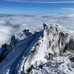 This was probably the most difficult single part of the climb (up and down). The vertical wall of ice was close to 3 metres high. To put it into perspective, when I fully extended my arm, with ice axe in hand, I couldn’t reach the top. I handed my ice axe to Robinson, so he had two, and watched him climb up. It seemed quite straightforward. Once Robinson was up and secure, he lowered both ice axes to me (mine and his), tightened the rope (in case I fell) and instructed me to proceed.