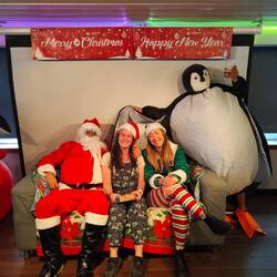 After dinner we went down to the lounge where there were Christmas carols being sang and they even had one of the guides dress up as Santa to hand out small gifts of chocolates. The chocolate box has little caramel filled penguins and reindeers (Allan though the reindeer was a Christmas hippopotamus 🤦♀️😂). We also listened to some live music in the Polar Bear Bar briefly before we went outside.