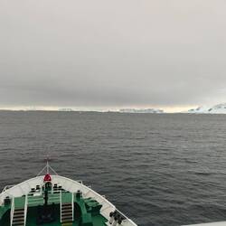 Wen we got to the front of the ship, we could see land in the far distance. We didn't originally plan on staying out very long, but ended up spending time on the bridge with the crew, and popping up to the deck above the bridge. The continent was getting closer and closer. While on the top deck we spotted some penguins swimming in and out of the water and we also saw two whales! It was pretty magical.