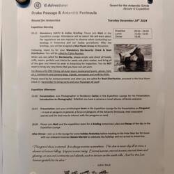 After the briefing, biosecurity (not nearly as intense as I thought it would be), and boot assignment, we had some lunch. After lunch was a kayak safety briefing because our days at sea are going to be lessening and we will be able to go ashore or kayak. It'll be really interesting to kayak in cold water because we've only ever done it in warm water. After our kayak briefing we had some downtime to read and have a nap.