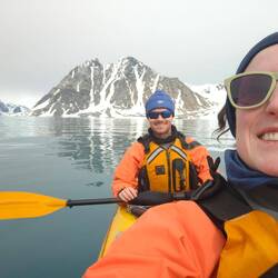 The afternoon expedition was to Stonington Island. The conditions were good so we decided to go kayaking! There were a couple of old bases on the island, and no hiking so we took advantage of our kayak option. While we were kayaking, we saw some of the glacier break off and crash into the water. The sound is like a crash of thunder as it falls off. Unfortunately, we didn't really see any wildlife, but it was a good experience to kayak in and amongst the ice. It was our first time kayaking in cold water.