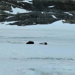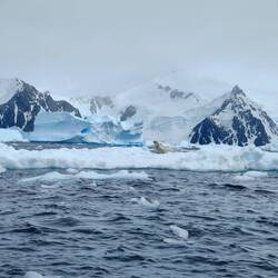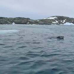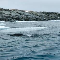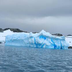 When we finally got called down to the mudroom, we made our way out into Horseshoe Island. Our first stop was a hike up to a viewpoint. We zigzagged our way across the hill, sometimes sinking in the snow, but otherwise pretty stable up to the viewpoint. We had to remember to slow down and turn around to admire the view from above. After our hike, we had a short zodiac ride to Basecamp Y which was a research base for the British. Apparently when base W was abandoned, Steve the dog didn't go with the crew abandoning base W, and turned up at Y a few months later! Unfortunately we didn't have access to the inside of this one like we expected to, but we still got to walk around. There were some cool rocks with copper veins throughout as well as 7 weddell seals having a nap on the snow. We also saw some brown skuas that like to nest here. On our way back, Kevin, the driver, spotted a leopard seal so we stopped for a bit to see the seal. It was very big! Apparently it lingered because it likes the bubbles the wake makes. We also saw a baby seal on the ice just as we were getting back to the ship. This seal was white, but I didn't quite catch the name unfortunately.
