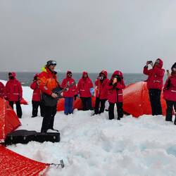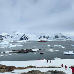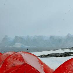 Camping was a pretty wild experience. We arrived on the island and got our tent and dry bag of supplies (like the sleeping mats). It was snowing pretty heavily when we got there, and the snow on the ground was very deep, but loose. We sunk down past our knees every other step. It made it pretty challenging to carry everything and walk to a spot to try and pitch the tent. Once we managed to find a spot, we had to try and pack the snow down to put the tent on, which was also challenging because of the soft snow. We patted down as best we could before starting to pitch the tent, and it was still snowing. We did it as quickly as we could to prevent the tent and our belongings getting wet with snowfall and we were pretty successful. While we were setting up the tent, a penguin came through waddling and on his belly just past our tent. It was pretty special. Afterwards, Steve, the musician played a few songs (before his fingers were too numb). Allan then went for a walk around the perimeter while I walked around the (small) camp. I witnessed the tail end of a Chinese couple getting engaged. It was a pretty epic spot, but was quickly turned sad when she dropped the ring amongst the snow and rocks. We didn't know that straight away, but as we stood chatting with a few people, the story of the lost engagement ring and the search for it unfolded. I felt very sad for them. At around 2230 people began to disperse and make their way to tents. We got all set up inside the tent and hunkered down for a chilly night. The tiny sleeping mat didn't really do very much to keep the cold out of the sleeping bag and the snow was pretty hard. Fingers crossed for some sleep!Read more