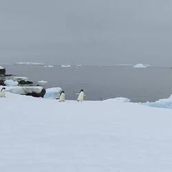 Watching the penguins was magical. It's an experience I don't think could ever be replicated. The vast amount of penguins was amazing, and the sound of adult adelies was mingled with the sound of newborn chicks. It was so cute to see the two gray colored chicks under several parents. The penguins were also walking or tobogganing around or going back and forth from the edge of the rocks trying to decide if they wanted to jump in. Movies do not do them justice. I could have stayed there all day watching them. Unfortunately, that wasn't an option.