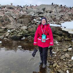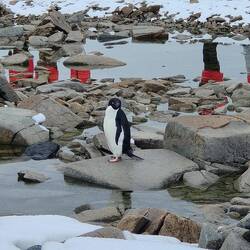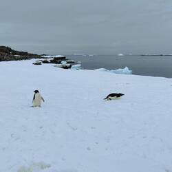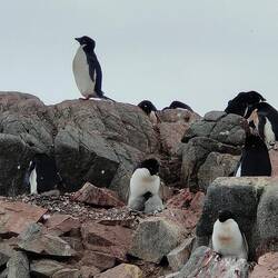 After a nap before and a lie down after breakfast, we headed for Red Rock Ridge and the Adelie penguins colony. We got the zodiac to the continent and there were penguins EVERYWHERE! These penguins are the classic black and white tuxedo penguins and the only penguins to spend their whole lives in Antarctica. We stayed on the zodiac to the second landing site, got off, and did a short hike through some peaks towards the colony. The small mountains were beautiful and the viewpoint allowed for great pictures of the ocean and the colony below.