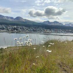 After getting up and having some cereal for breakfast, we got permission to leave our bags and went to head out for a bit to walk around Ushuaia before meeting our couchsurfers. We went for a walk around part of the bay, talking about all the travel plans we were looking at last night and the best way to do things. There were lots of wildflowers, and it was quiet because it was away from the main tourist area. We did forget to put sunscreen on because we didn't expect to be out as long as we were, so that was unfortunate.