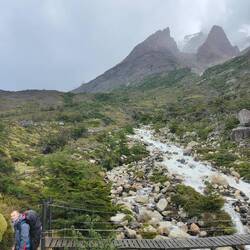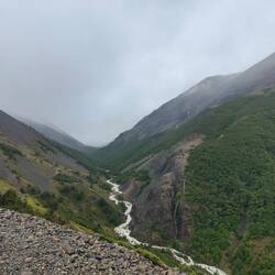 We layered up, checked our bags, and got on our way. Shortly into our rocky, foresty path we ran into some Scottish people who told us that many more raging rivers to cross lay ahead. I was already dreading it, but the only way we could go was forward. The rain seemed to lighten a bit which was helpful and the strong gusts were less frequent. I guess waiting in Los Cuernos longer than intended paid off a bit.