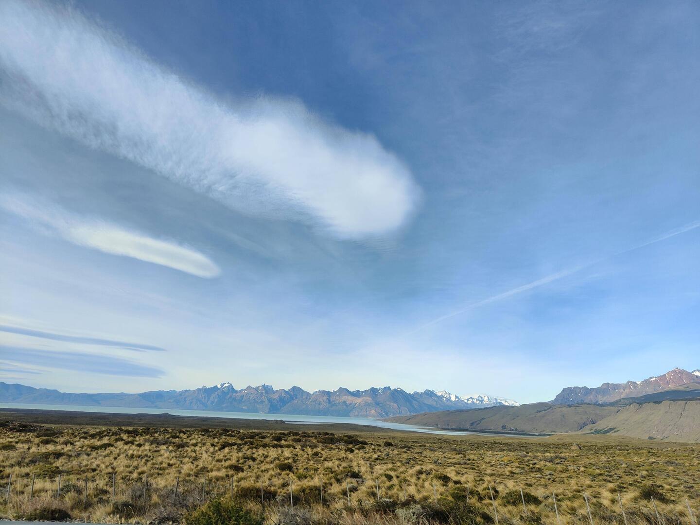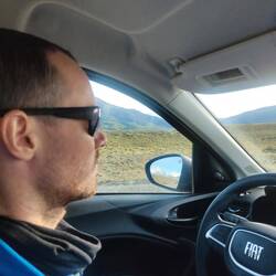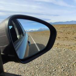 Allan got up for sunrise and hiked up to a nearby viewpoint. I watched from the car comfy in my sleeping bag 😁. Once Allan was back down from the viewpoint, we started getting ready to leave El Chaltén. As we were pulling away, Patagonia awarded us with perfectly blue skies and a brilliant view of the mountains (the clearest view we've had the entire time in El Chaltén).