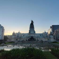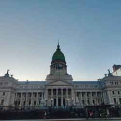 After the palace we made the short walk down the street to Plaza Moreno and the Congreso de la Nacion Argentina. It's a large building with columns and an old fountain in front of it. I also liked the contrast of the white building with the green copper dome at the top. While we walked around the plaza, we were surprised by all the people exercising, running, and dancing. There were also a lot of dogs and some kids playing soccer. It seems like a very active place.