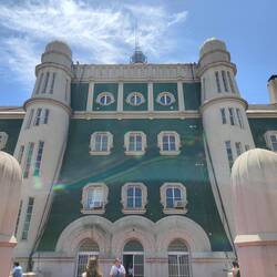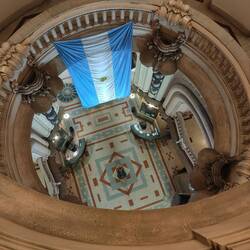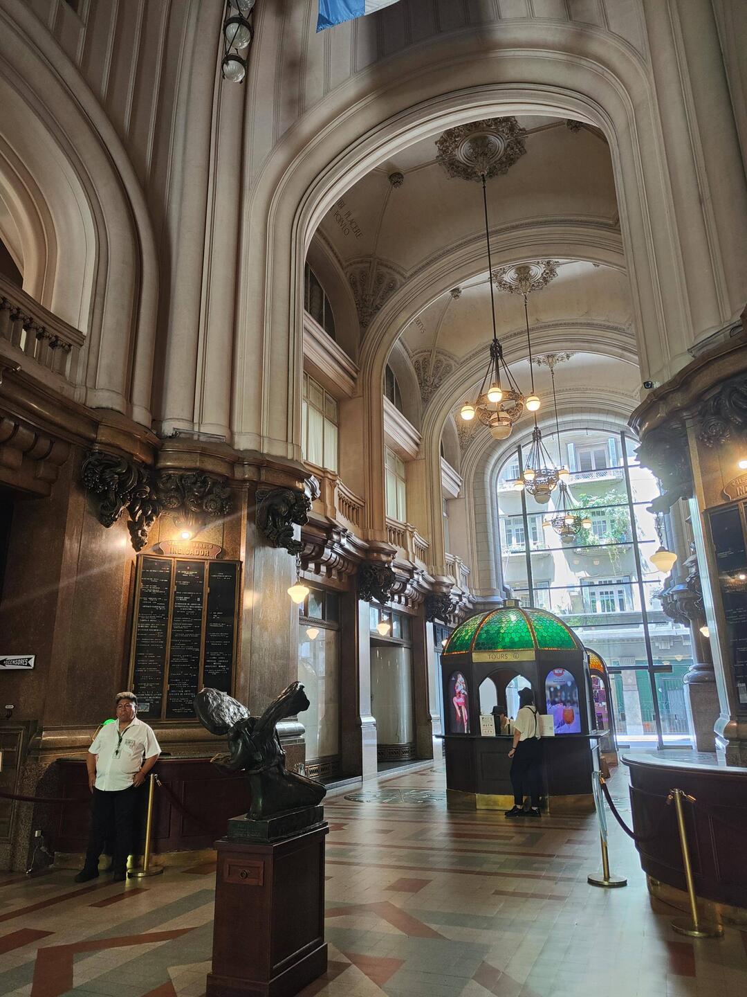 Our first day in Buenos Aires was spent exploring the historic center. Our first stop was the Palacio Barolo. This was a short walk from our hostel. When we arrived, we were greeted by people in white shirts, black trousers, and Italian hats. Once the four started in the main foyer, we were told that we'd entered Dante's 'Hell'. The Barolo Palace was designed by an Italian, Mario Pareti, and commissioned by an Italian, Luigi Barolo. The buildings decoration was inspired by Dante's Divine Comedy. The first floor was Hell. It had some gargoyles, and colored tiles to suggest it was Hell. It was very grandiose with lots of decorations.