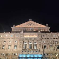 We got some cheap dinner at Big Pizza before continuing our exploration around the historic center. We walked up to the Teatro Colon and Obelisco. The theater looks short compared to some bigger theatres we've come across, and the architecture is similar to the Congress building from earlier. The columns and marble are very greco. A unique feature was in the area around the theatre, there are chunks of cement missing replaced with thick glass. You can see directly down to the stage area. Because it's January, all the actors are on a break, so unfortunately no shows and nothing to see on the stage.