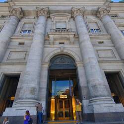Next door to Casa Rosada is Banco Nacional de Argentina. This was an absolutely huge building that extended all the way down the block. We popped our heads in and saw the huge domed center and marble flooring. Much like other buildings in Buenos Aires, there was a heavy European influence on the design. Across the street behind the bank and Casa Rosada we saw the Centro Cultural Kichner. This was a former post office turned cultural center. It is also a large, impressive building with huge columns. It also has a balcony that looks towards Casa Rosada because apparently the person in charge of the post office was just as important as the president (interesting theory). Unfortunately it was closed so we couldn't go inside. But we did go close enough to see a massive black stone sculpture to a woman out front.