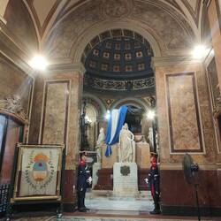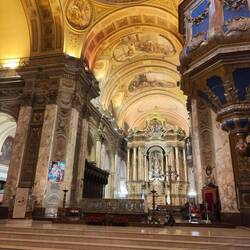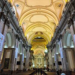 We walked back across the plaza, past the bank and Casa Rosada towards the Catedral Metropolitana. The church is white and tan with marble columns. Marble also features heavily in altar decorations. The ceiling was lit up with warm yellow and pink lights, which I felt didn't show the ceiling nicely. The altars around the sides of the cathedral were very impressive as well as the dome in the center of the church.