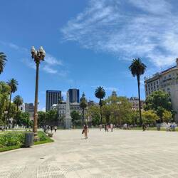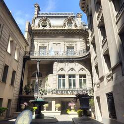 After the cathedral, we walked out of the historic center towards Retiro. We stopped at Plaza San Martin. It is a long, rectangular plaza. It seems more like a park than plaza though, especially compared to the other two plazas we've seen thus far in Buenos Aires. Along the outsides of the plaza are many old mansions predominantly inspired by French architecture. We had a quick look at Palacio San Martin, but I think there was an event on so we couldn't go inside. We caught a glimpse of the tall inner courtyard and lovely stone details like crown molding.